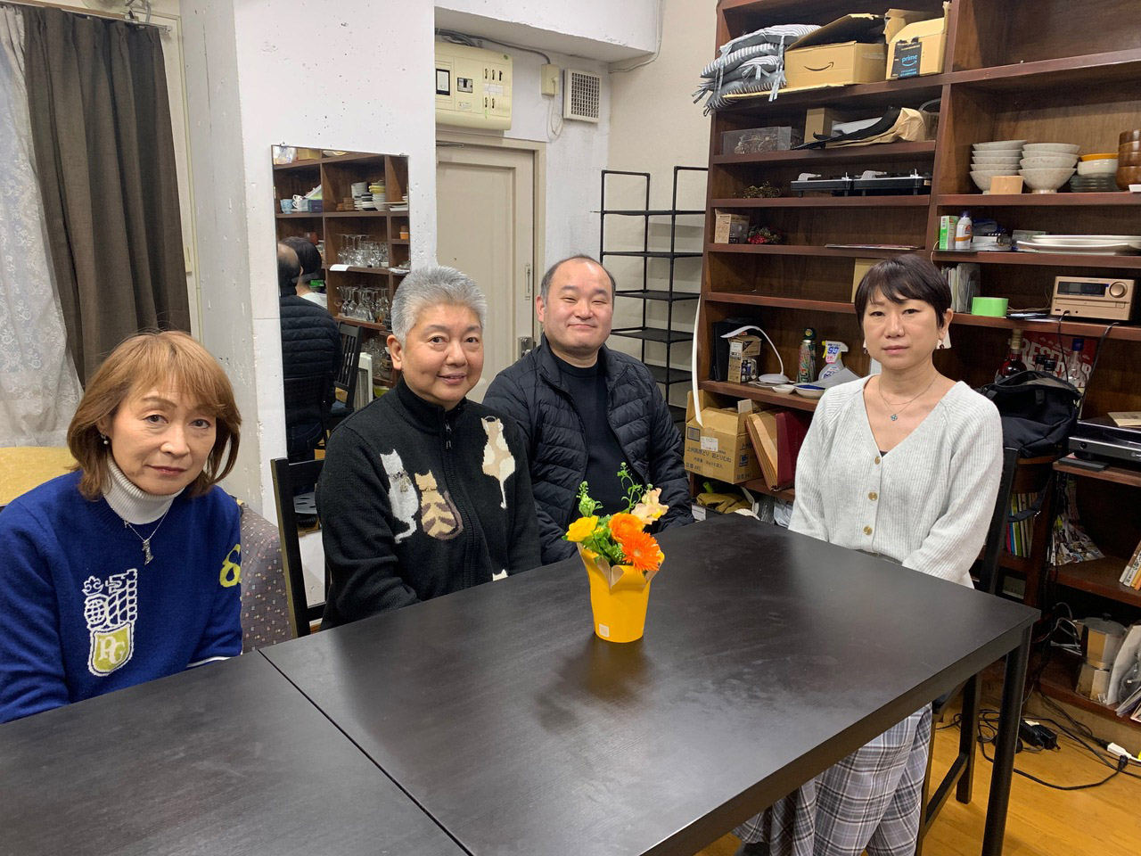 参加者1名、ペットロスの勉強のために見学という方が3名、スタッフ1名、5名でした。いただいたお花で、テーブルに新年会的な明るさが加わりました。ありがとうございます。